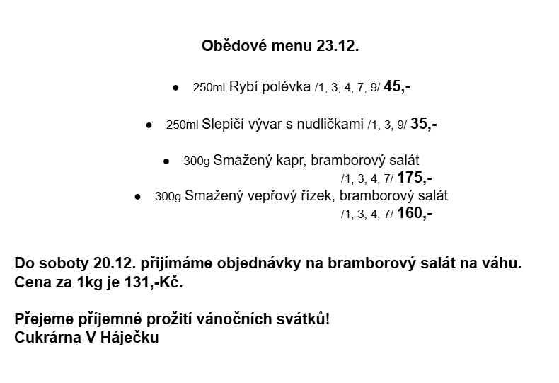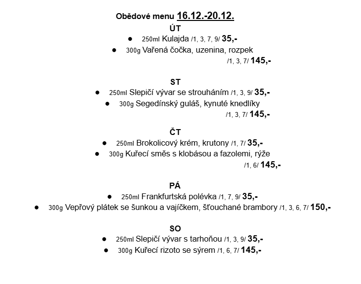 Cena za všechny obaly na obědové menu je 15 Kč.